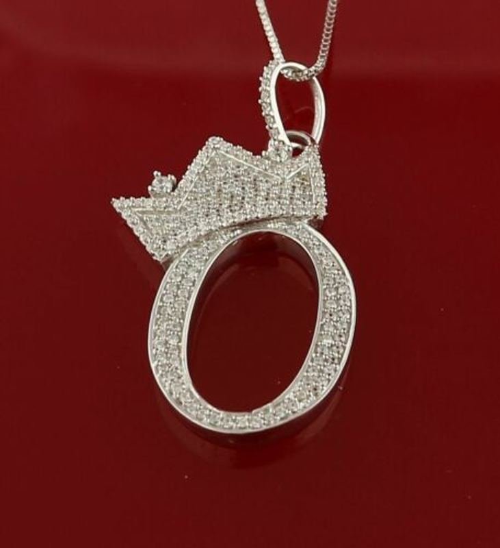 10k White Gold Finish Crown Alphabet Silver Pendant w/ Lab Created Diamonds