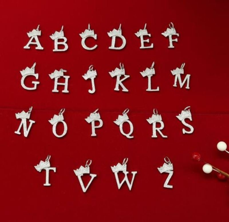 10k White Gold Finish Crown Alphabet Silver Pendant With Lab Created Diamonds