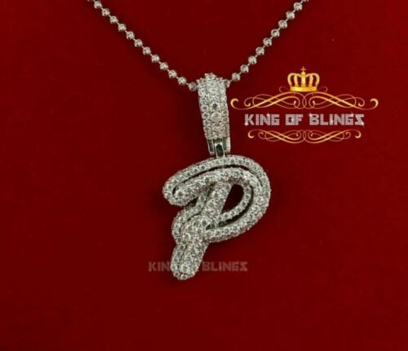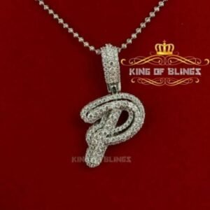 10k White Gold Finish Cursive 3D Alphabet w/ Lab Created Diamonds Silver Pendant