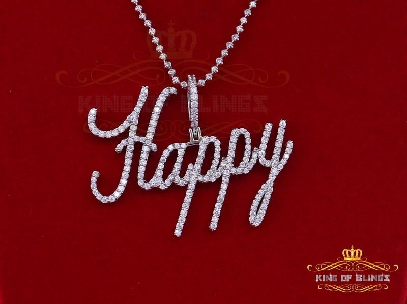 10K White Gold Finish HAPPY Silver Pendant W/Lab Created Diamonds