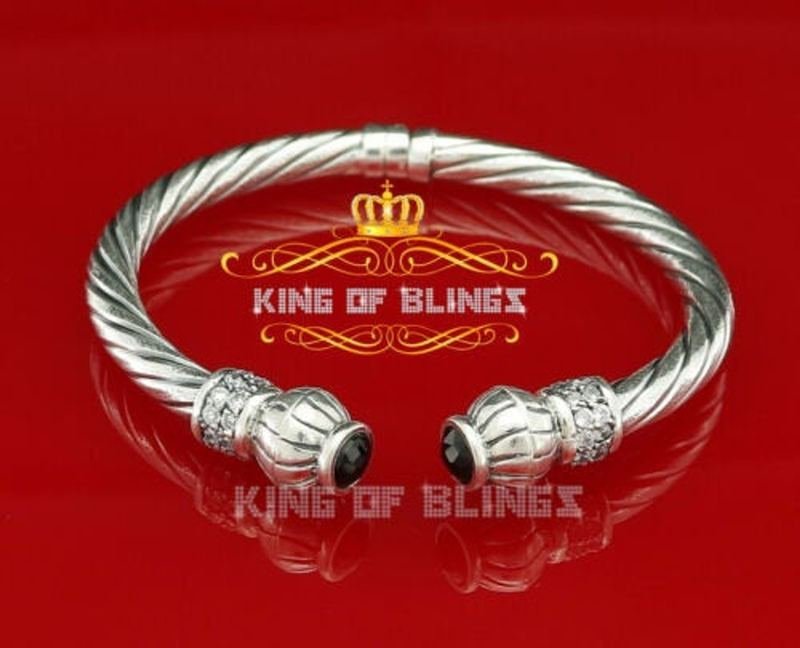 10K White Gold Finish in Silver Men/Ladies’s Bangle Bracelete W/Lab CR Diamonds