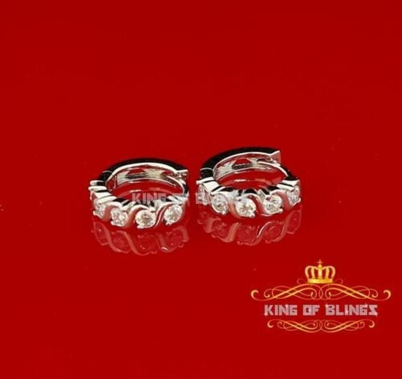 10K White Gold Finish, 15mm Lab Created Diamond Unisex Hoop Silver Earrings