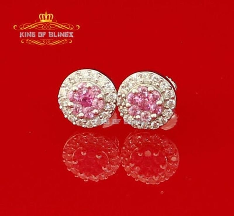 10K White Gold Finish, Lab Created Pink Diamond Silver Stud Earrings