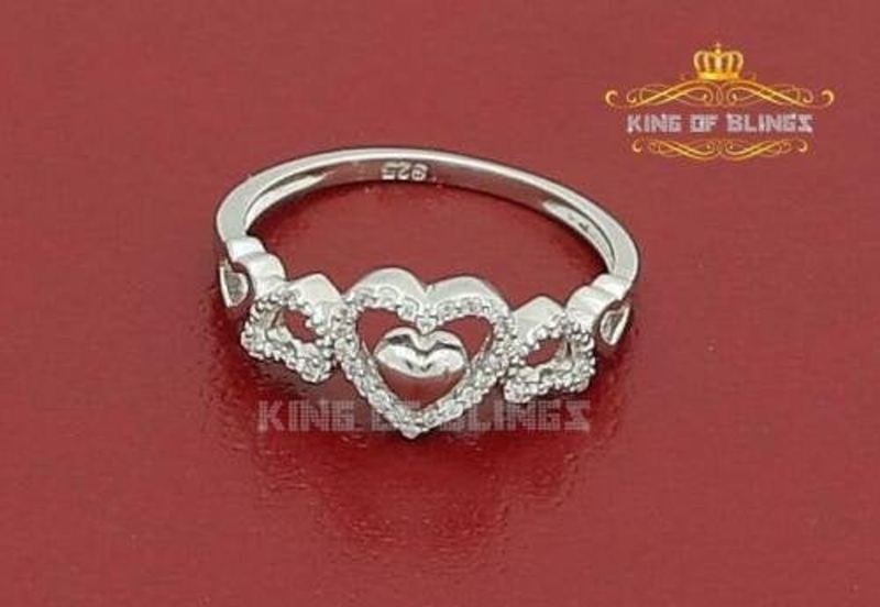 10K White Gold Finish Ladies Heart Silver CZ Ring Size 6.5
