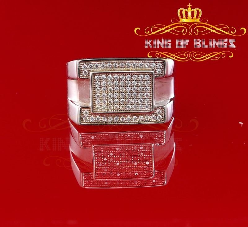 10K White Gold Finish Men’s Silver Ring with Lab Created Diamonds Size 10