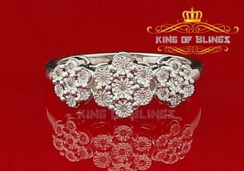 10K White Gold Finish Real Diamond 0.10CT Past Present Future Silver Ring Size 8