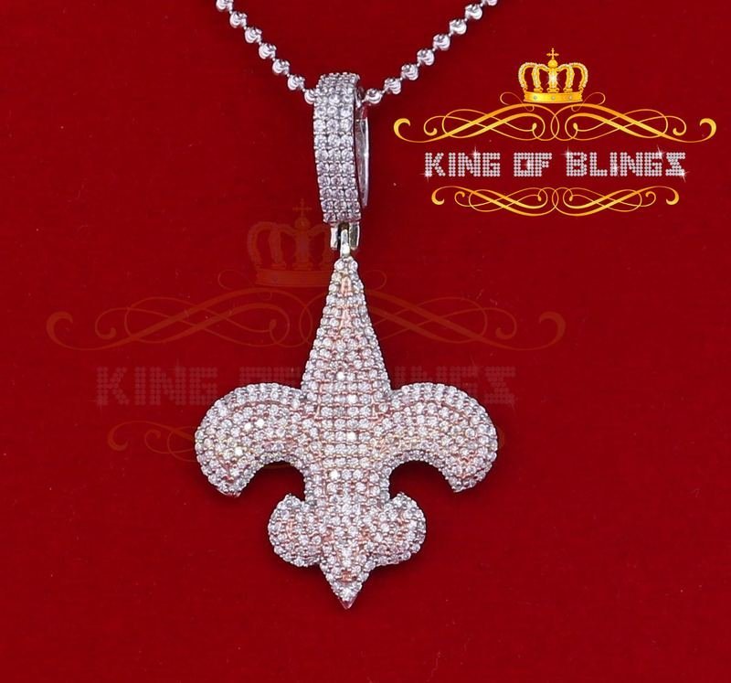 10K White Gold Finish Silver Fleur de Lis Pendant with Lab Created Diamonds