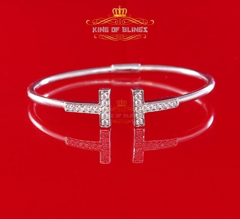10K White Gold Finish Silver Ladies Bangle W/Lab Created Diamond-Size 2.27 Inch
