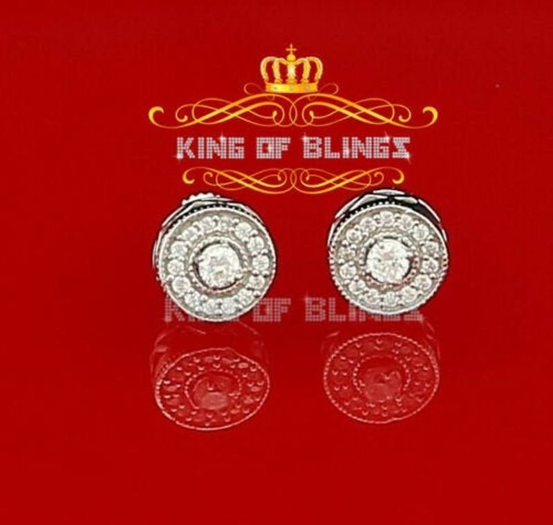 10K White Gold Finish Silver Stud Men’s/Ladies Earrings with Lab Created Diamonds