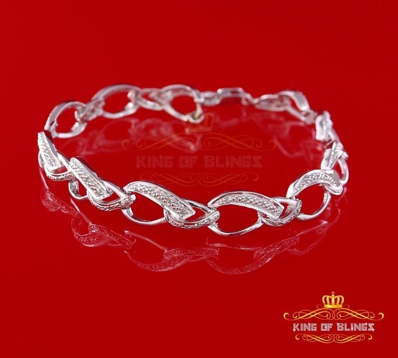 10K White Gold Finish with 0.15CT Real Diamond Silver Ladies Bracelet-Size 7Inch