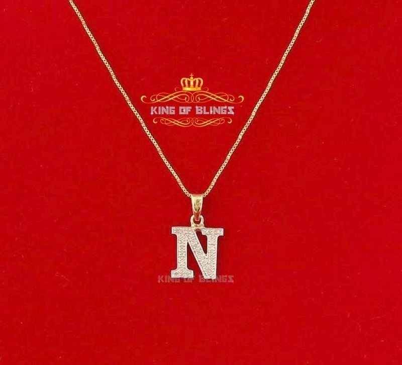 10k Yellow Gold Finish Real Diamond 0.10CT in Silver Initial Alphabet Pendant