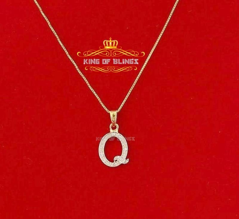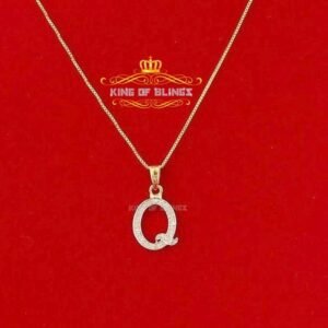 10k Yellow Gold Finish Real Diamond 0.10CT in Silver Initial Alphabet Pendant