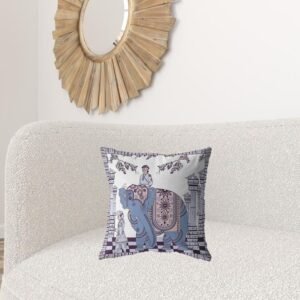 Decorate your home with this gorgeous Blue Purple Ornate Elephant Zippered Suede Throw Pillow that can become the bohemian centerpiece in your living space. Flaunting an intricately detailed traditional illustration in steel blue, pale pink, and deep purple over a white-toned base, this pillow will undoubtedly be an element of interest in the room to allure the gaze of the guests. Made from premium suede fabric, this piece is highly durable with a soft hand and glossy sheen that?EUR(TM)s meant to stay for years to come. The polyfill insert makes it super soft, providing maximum comfort with a luxurious appearance. This pillow comes with a neatly done zipper making the cover easy to remove and clean at your convenience. If you want a uniquely designed traditional element to add to your living space, this decorative throw pillow is just the perfect piece of d?(C)cor to adorn your home without being too loud. 18?EUR? x 18?EUR? x 5?EUR?