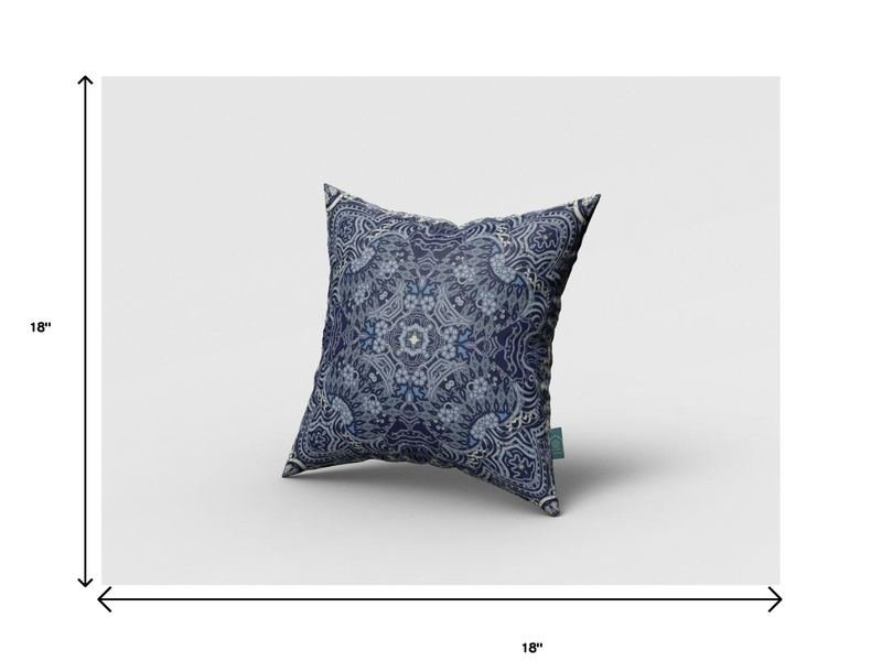 Turn your living room into a shrine of peaceful remedy with this one-of-a-kind Indigo Boho Ornate Zippered Suede Throw Pillow. Made to be the embodiment of bohemian bliss, it entails strikingly detailed visuals in indigo and dove gray. This decorative pillow is made from premium quality leather-like suede fabric for enhanced durability and utmost softness, making it a plush accent piece for your home. It comes with a soft polyfill insert for added fluffiness that provides utmost comfort to your back and neck every time you lean on it. The zippered closure makes the cover easy to take off for washing. Bring home an accent of pleasing delight with this alluring throw pillow to spruce up your bohemian home. 18?EUR? x 18?EUR? x 5?EUR?Ingredients: Size: Color: Made In: United States