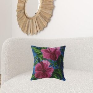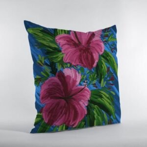 The eye-catching bold-toned Pink Blue Hibiscus Zippered Suede Throw Pillow will surely stand out in its look and color, giving a tropical Hawaiian vibe to your boho-chic d?(C)cor. The mesmerizing hot pink hibiscus flowers with saturated green-toned leaves over a cobalt blue base resemble a freshly painted impasto painting for visual intrigue. Crafted from durable suede fabric which makes the pillow easy to maintain while offering a smooth finish with a luxurious sheen. Standing out in fashion and function, this pillow comes with a neatly done zipper making the cover easy to remove and clean at your convenience. Redefine your interior style with this bright-colored decorative throw pillow that is distinctive in fashion and functionality. 18?EUR? x 18?EUR? x 5?EUR?Ingredients: Size: Color: Made In: United States