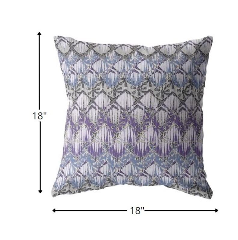 This visually rich Purple Gray Hatch Zippered Suede Throw Pillow will be a unique addition to your bohemian decor. Featuring zig-zag hatch-like patterns in cool-toned purple, gray, and ice blue, this pillow will induce a calm and relaxing atmosphere in the room. The sleek and smooth suede fabric?EUR(TM)s presence provides this cushion with a sumptuous and opulent look while ensuring long-lasting durability to serve you in the coming years with satisfaction. Featuring a soft polyfill insert, this throw pillow is very fluffy, super comfortable, and cuddly, while the seamless zipper and removable cover make it hassle-free to clean. Combining a cool-toned palette with a classic pattern, this decorative pillow is sure to add a blissful bohemian touch to your interior d?(C)cor. 18?EUR? x 18?EUR? x 5?EUR?