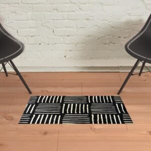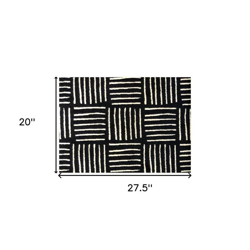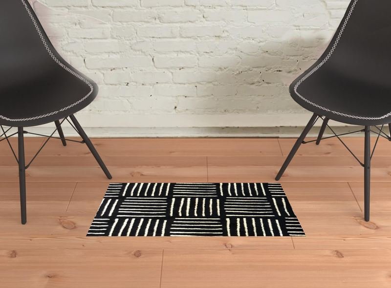 Set an inviting tone in your space with this 2-foot x 3-foot black and off white abstract machine tufted area rug. This rectangle shaped rug features a abstract design in black and off white to give it visual interest. A classic shape marries with good looking design for your space ideal for spaces with kids and pets, this rug is stain resistant to help repel stains and spilled liquids. Area rugs help to give warmth and sense of home to your space. 0.25-inch H x 20-inch W x 27.5-inch DIngredients: Size: Color: Made In: United States