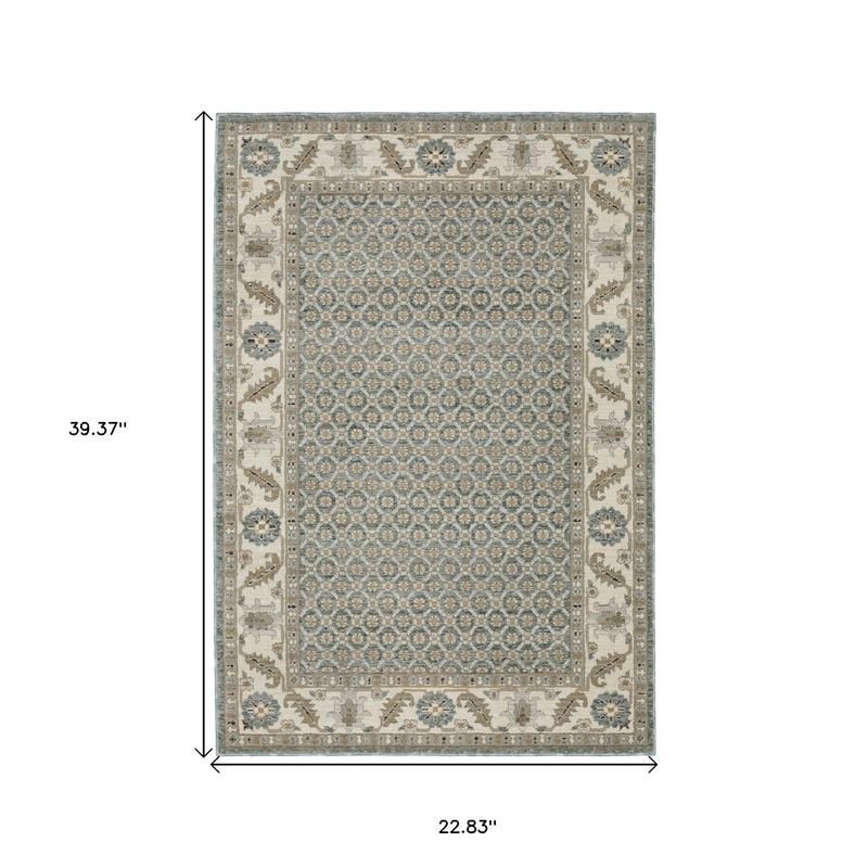 This 2-foot x 3-foot blue oriental power loom area rug, is a great way to add warmth to a room. This rectangle shaped rug features a oriental design in blue to give it visual interest. A classic shape marries with good looking design for your space ideal for spaces with kids and pets, this rug is stain resistant to help repel stains and spilled liquids. Place this area rug against a hardwood or tile floor and it will enliven your living space with style and sophistication. 22.83-inch H x 39.37-inch W x 0.55-inch D
