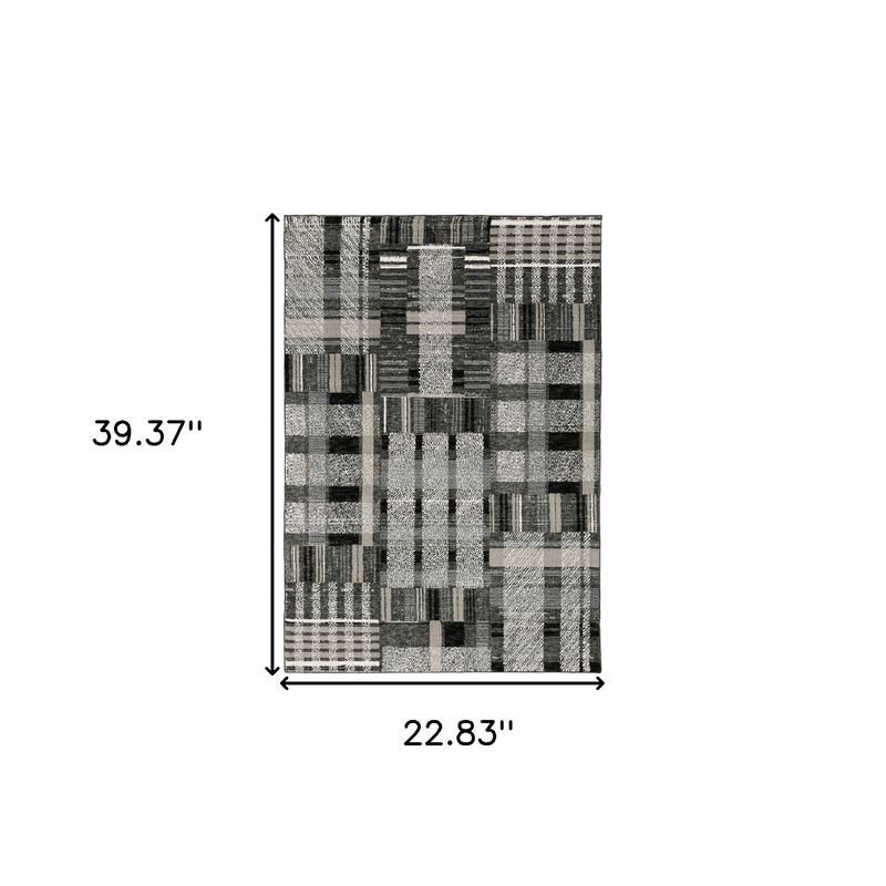 This 2-foot x 3-foot gray and black geometric power loom area rug, is a great way to add warmth to a room. This rectangle shaped rug features a geometric design in gray and black to give it visual interest. A classic shape marries with good looking design for your space ideal for spaces with kids and pets, this rug is stain resistant to help repel stains and spilled liquids. Area rugs help to give warmth and sense of home to your space. 22.83-inch H x 39.37-inch W x 0.55-inch D