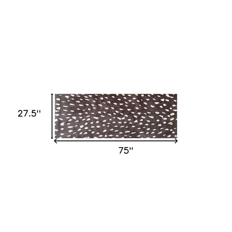 Add some artistry to your room with this 2′ x 6′ chocolate animal print machine tufted washable runner rug with uv protection. This runner shaped rug features a animal print design in chocolate to give it visual interest. A classic shape marries with good looking design for your space Ideal for spaces with kids and pets, this rug is stain resistant to help repel stains and spilled liquids. Area Rugs help to give warmth and sense of home to your space. 0.25″ H x 27.5″ W x 75″ DIngredients: Size: Color: Made In: United States