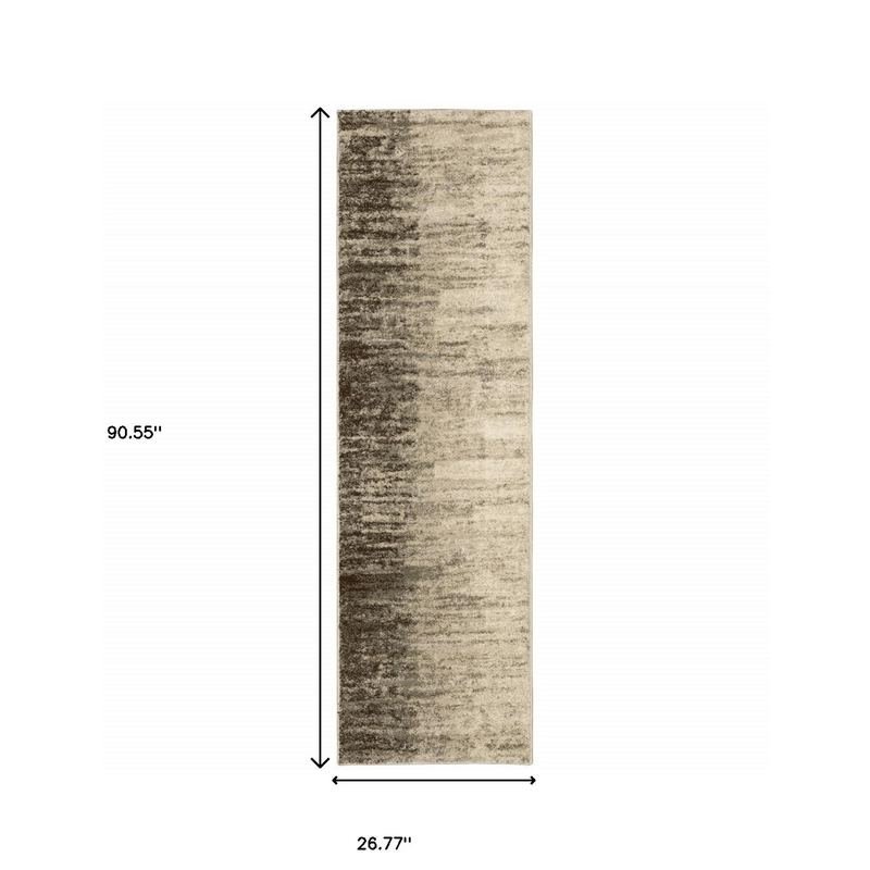 2′ X 8′ Beige And Grey Abstract Power Loom Stain Resistant Runner Rug