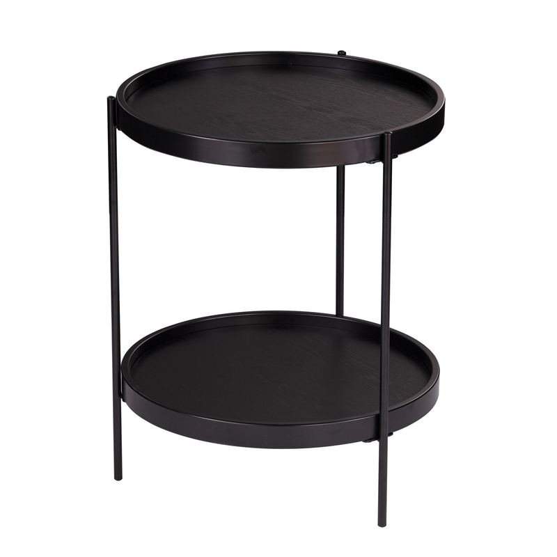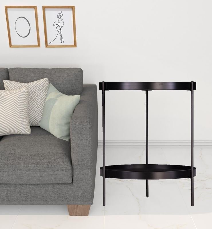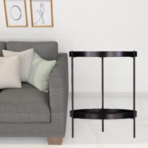 Optimize your space and add some charm to your room with the 24″ black manufactured wood and iron round end table with shelf. Artfully crafted of metal, this beautiful design is chock-full of fine details. A sleek black monotone color gives this iron and manufactured wood table a fresh and updated look. Help to keep your space organized with the included single shelf. A great accent on either side of the sofa or bed, this adorable end or side table is just what you need. You can match it with other pieces to get the ideal look for your place. 24″ H x 19.75″ W x 19.25″ DIngredients: Color: Size: QTY: 1.0