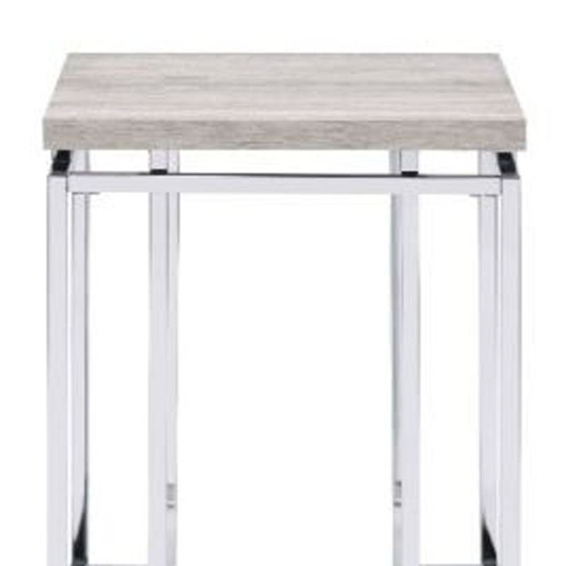 Show off your exquisite taste with this 24″ chrome and natural oak manufactured wood and metal square end table. The natural oak manufactured wood top of this table is a nice contrast to the high quality, chrome metal of the base. Side tables are a great way to flank your sofa, use as an accent next to your favorite chair, or can even be used bedside. You can match it with other pieces to get the ideal look for your place. 24″ H x 19″ W x 19″ DIngredients: Size: Color: Made In: Taiwan