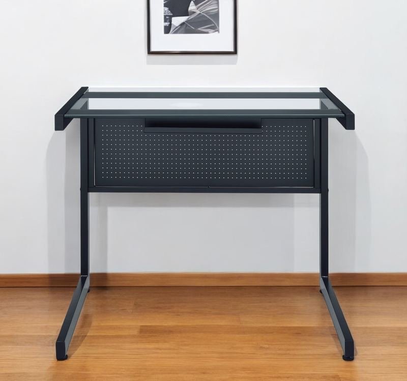 33″ Clear and Black Glass and Stainless Steel Writing Desk