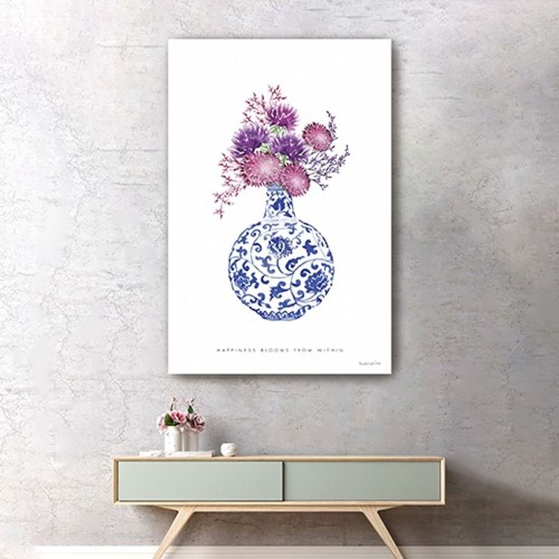This 36 inches x 24 inches blue and white happiness floral vase canvas wall art will add a beautiful decorative accent to your decor. This print is a visual artistic expression that allows you to decorate your space in style. Reproduced for you on canvas, this hanging decorative accent will be a trendy and fashionable way to dress your walls. Adding this hanging wall art to your space to make your room feel more finished and attractive. Utilize this opportunity to create a focal point in the room with this fabulous wall decor option. 36 inches H x 24 inches W x 1.25 inches DIngredients: Size: Color: Made In: United States