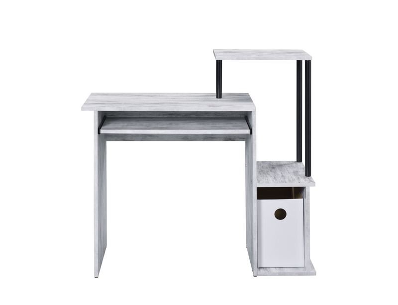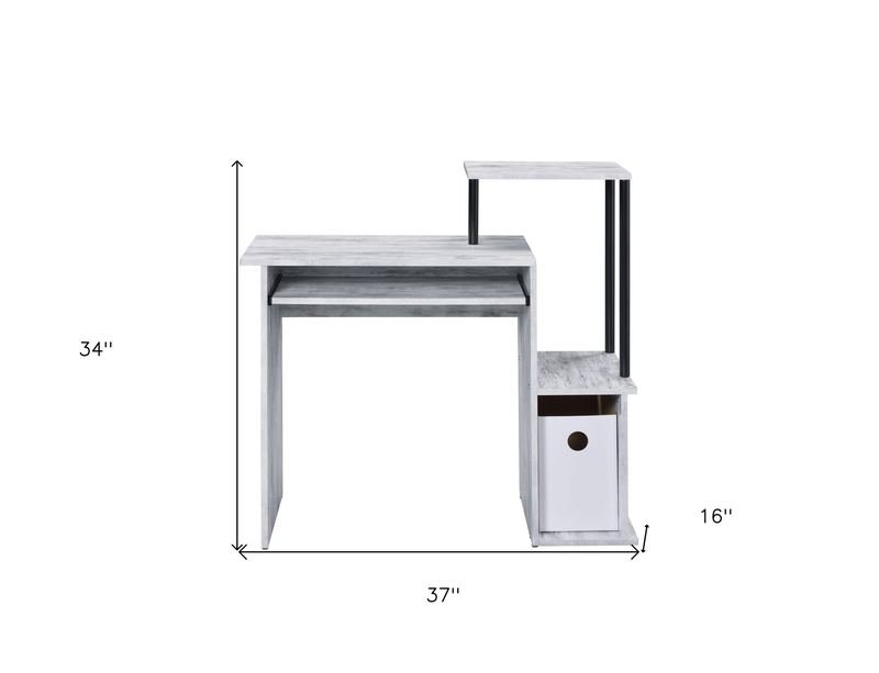 This 37-inch antiqued white computer desk will help to turn your office space into an executive suite. Designed to easily fit into most spaces, this classically shaped rectangular desk will turn your room into a productive workspace. Designed so that you can adjust to your room and style preferences, this desk can be assembled in either direction. Built to last, this sturdy desk is designed for comfort and efficiency for years to come. 34-inch H x 37-inch W x 16-inch D