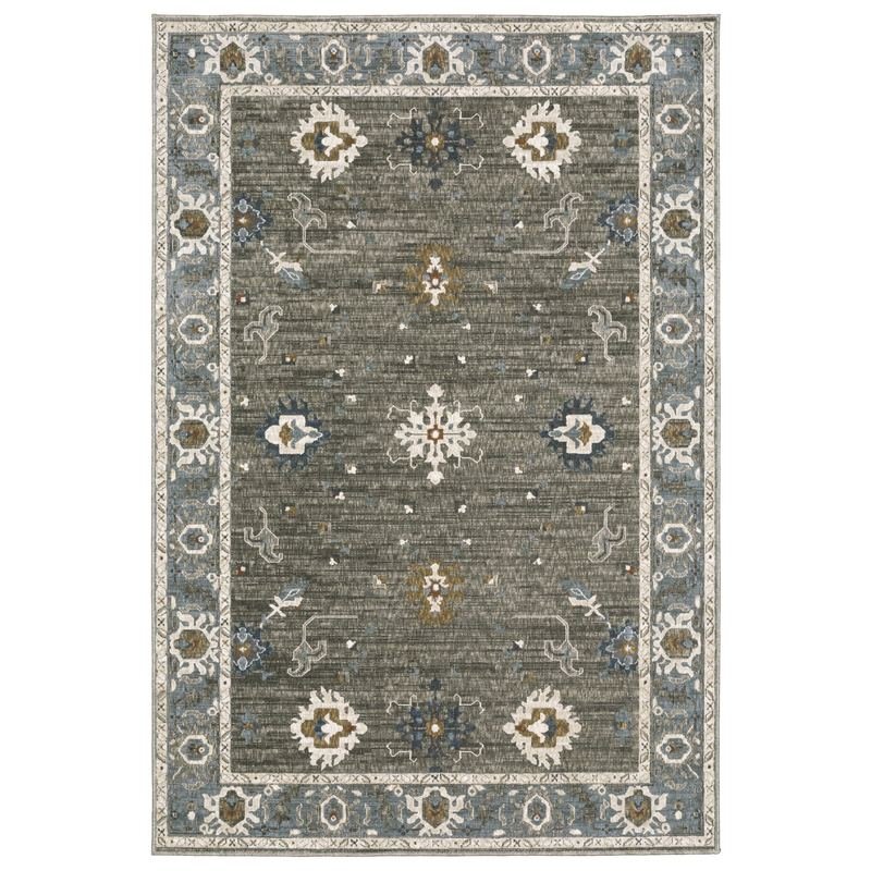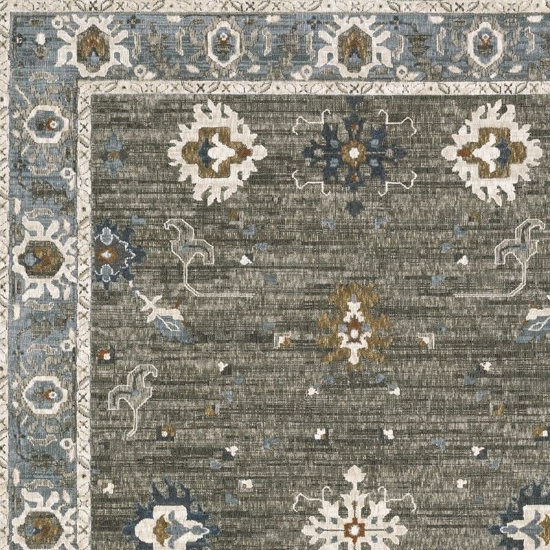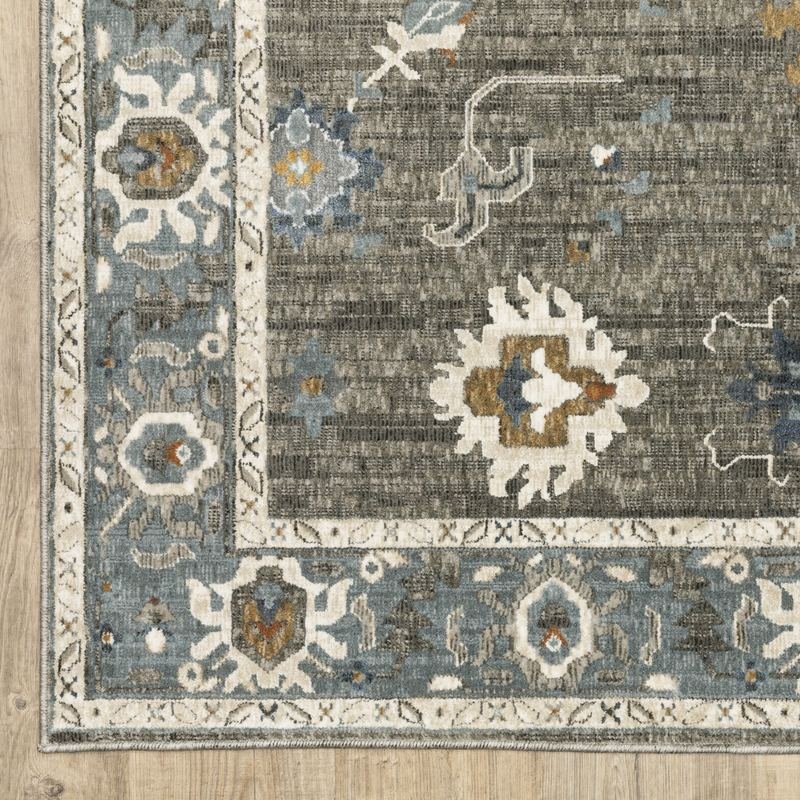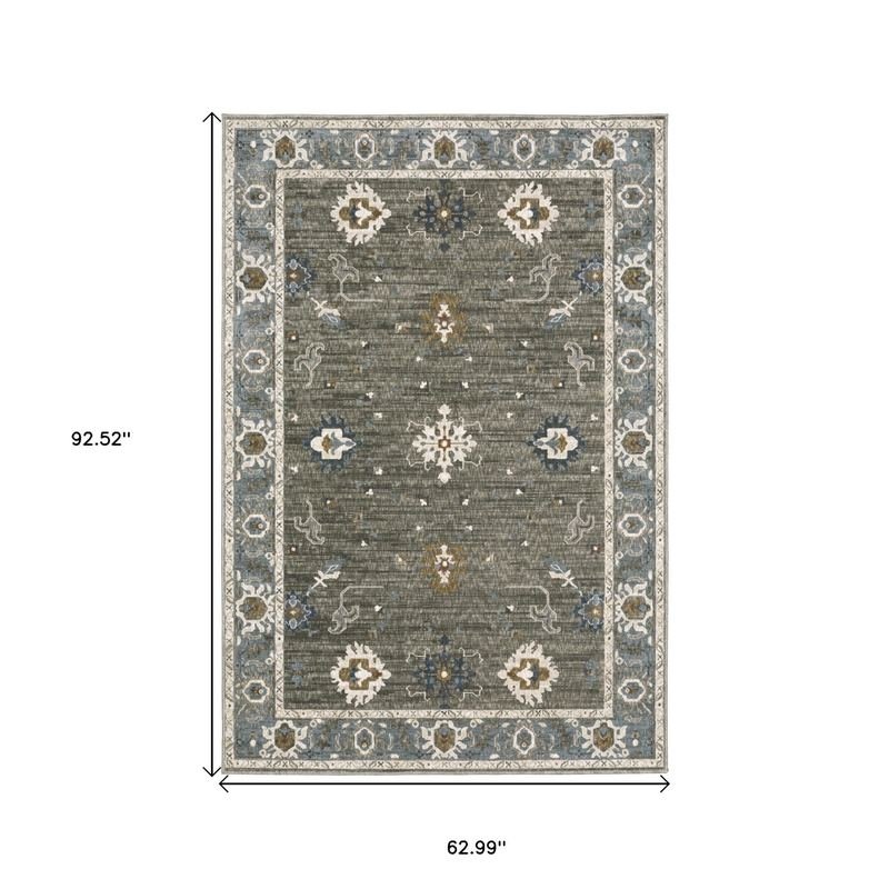 5′ X 8′ Blue Ivory And Gray Oriental Area Rug