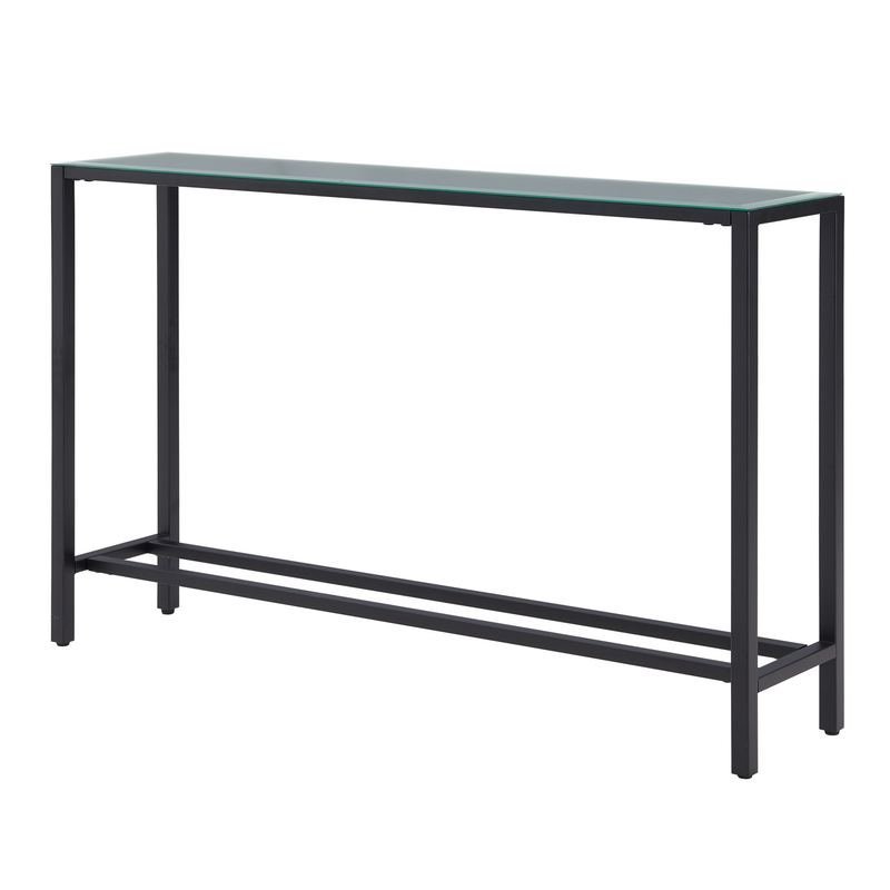Make a statement in your entryway with our stunning 56-inch black mirrored glass console table. This rectangular table has clean lines and plenty of surface area. Versatile in use, console tables can be used for a variety of purposes in a variety of rooms and settings. 30-inch H x 56-inch W x 8-inch DIngredients: Size: Color: Made In: Taiwan