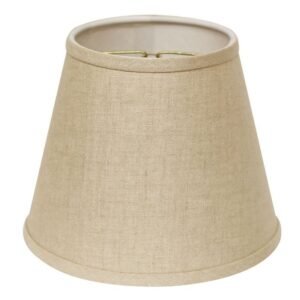 This Dark Wheat Hardback Empire Linen Lampshade has a hint of traditional flair and will be a great addition to your lamp base. This hardback lampshade includes a standard bulb clip that fits over a standard harp and can be used with your existing finial design. This high quality crafted drum shape has a slight slant to give it some visual interest and is crafted of the finest heathered linen weave with a fold on top and bottom of the shade. 7″ x 8″ x 8″