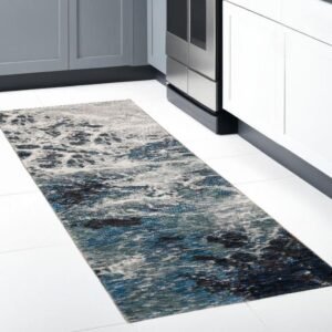 This 8-foot runner gray abstract power loom runner rug, is a great way to add warmth to a room. This runner shaped rug features a abstract design in gray to give it visual interest. A classic shape marries with good looking design for your space the coloring of this rug adds a delightfully neutral tone to your home and will easily match with most any decor. Ideal for spaces with kids and pets, this rug is stain resistant to help repel stains and spilled liquids. Place this area rug against a hardwood or tile floor and it will enliven your living space with style and sophistication. 26.38-inch H x 99.61-inch W x 0.55-inch D