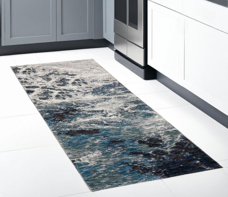 8′ Runner Gray Abstract Power Loom Runner Rug