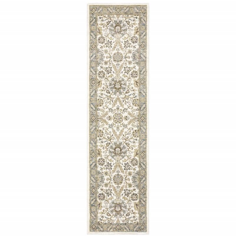 Set an inviting tone in your space with this 8-foot runner gray and ivory oriental power loom runner rug. This runner shaped rug features a oriental design in gray and ivory to give it visual interest. A classic shape marries with good looking design for your space ideal for spaces with kids and pets, this rug is stain resistant to help repel stains and spilled liquids. Place this area rug against a hardwood or tile floor and it will enliven your living space with style and sophistication. 26.38-inch H x 99.61-inch W x 0.55-inch D