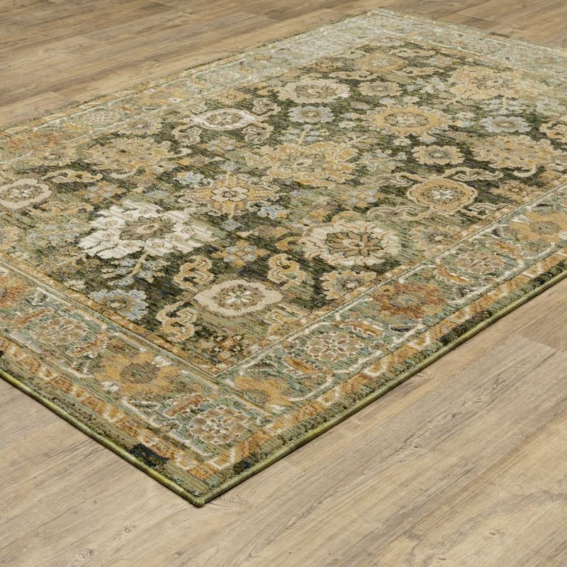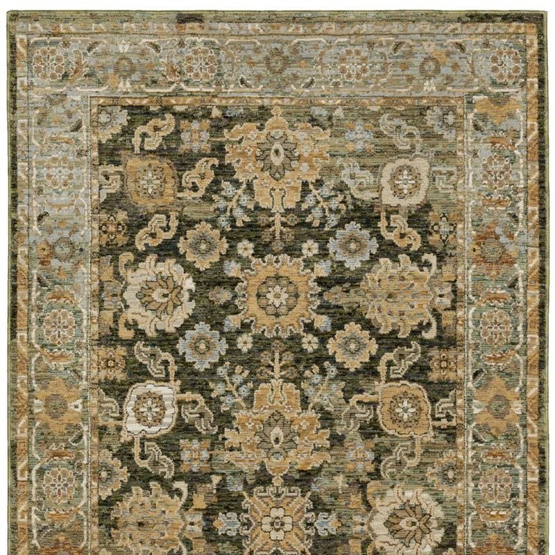 Add some artistry to your room with this 9-foot x 12-foot green oriental power loom area rug. This rectangle shaped rug features a oriental design in green to give it visual interest. A classic shape marries with good looking design for your space ideal for spaces with kids and pets, this rug is stain resistant to help repel stains and spilled liquids. Place this area rug against a hardwood or tile floor and it will enliven your living space with style and sophistication. 102.36-inch H x 145.67-inch W x 0.55-inch DIngredients: Size: Color: Made In: United States