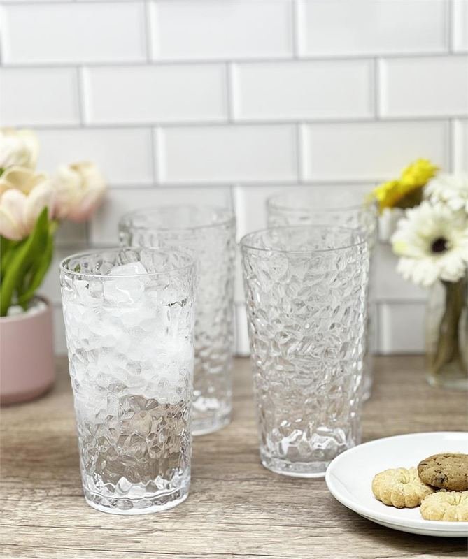 Acrylic set of 4 – clear 19 oz HB tumblers, 4pcs stack together wrap with rubber band