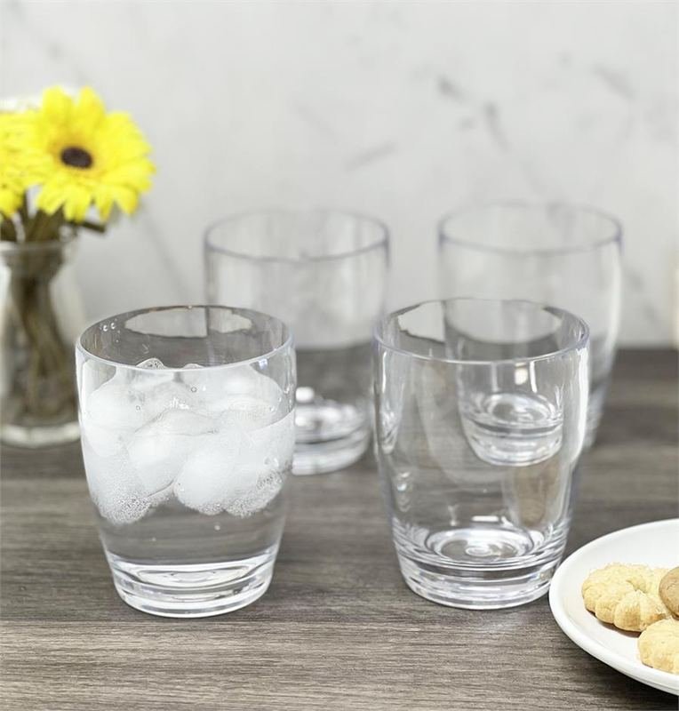 Acrylic set of 4 – Clear color 14 oz DOF tumblers, 4pcs stack together wrap with rubber bandIngredients: Acrylic Size: 14 OZ.Color: ClearMade In: Taiwan