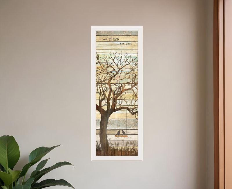 Add an air of fashion to your room and rejuvenate the space with this and then i met you 2 white framed print wall art. This print is a visual artistic expression that allows you to decorate your space in style. Reproduced for you on paper, this hanging decorative accent will be a trendy and fashionable way to dress your walls. Hang on your wall to add some up to date fashion and decoration. Instantly liven up your space with this art that brings color and dimension to your walls. 39-inch H x 15-inch W x 1-inch D