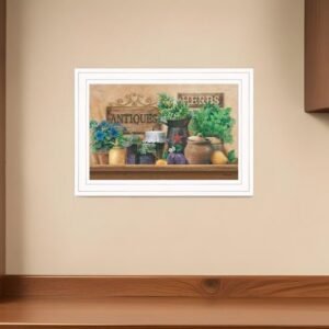 The antiques and herbs 1 white framed print kitchen wall art is the perfect decorative accessory for your home. This print is a visual artistic expression that allows you to decorate your space in style. Reproduced for you on paper, this hanging decorative accent will be a trendy and fashionable way to dress your walls. Hang on your wall to add some up to date fashion and decoration. Utilize this opportunity to create a focal point in the room with this fabulous wall decor option. 11-inch H x 15-inch W x 1-inch DIngredients: Size: Color: Made In: United States