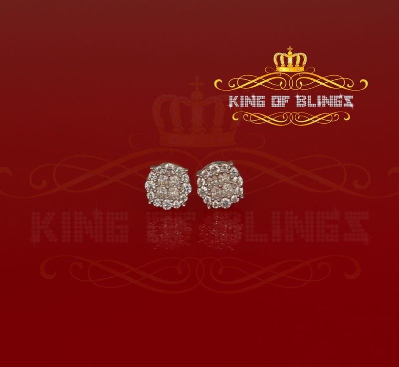 Aretes Para Hombre 925 white Silver Iced out CZ Round Screw Back Stud Earrings