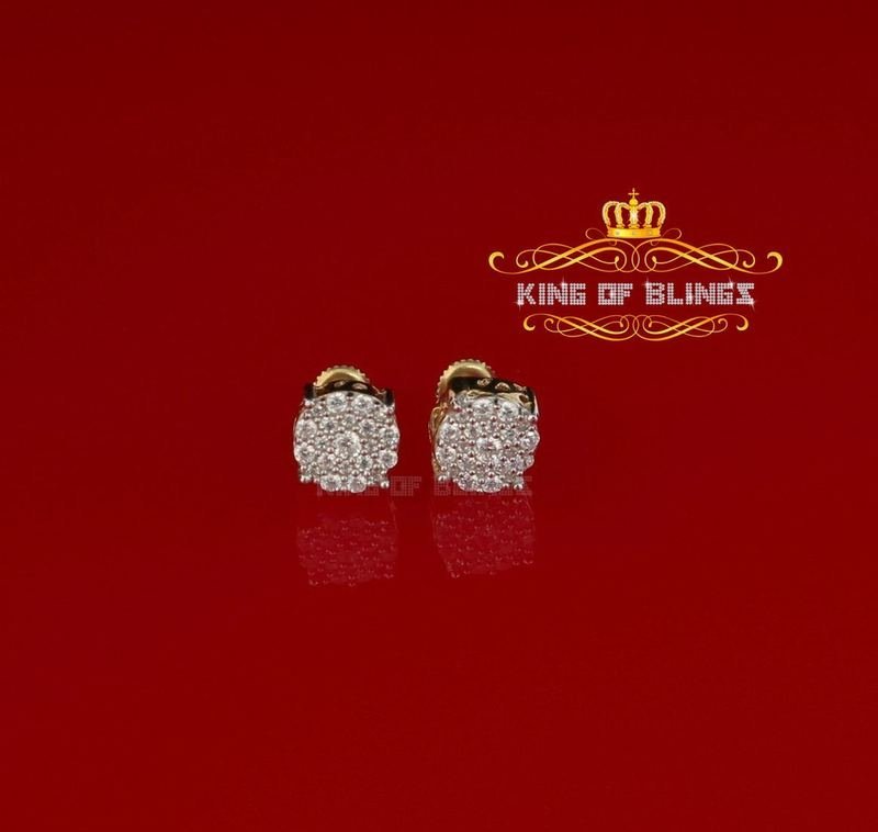 Aretes Para Hombre 925 yellow Silver Iced out CZ Round Screw Back Stud Earrings