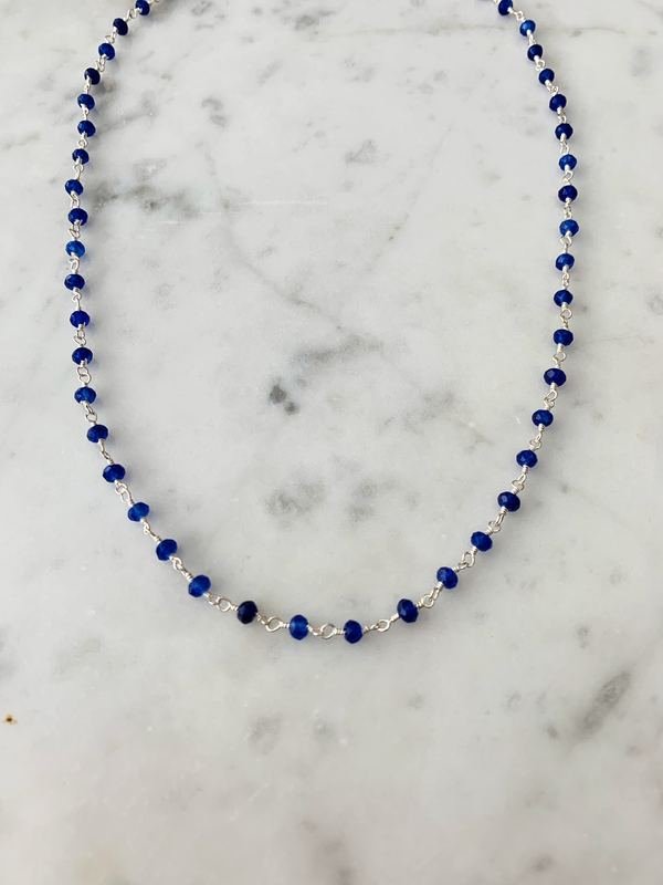 Balmy Nights Station Necklace with Sapphire Beaded Silver Chain.