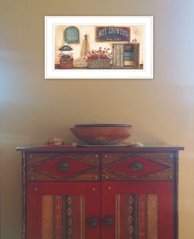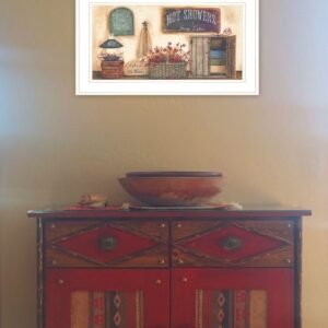 The bath house collection 1 white framed print bathroom wall art is the perfect decorative accessory for your home. This print is a visual artistic expression that allows you to decorate your space in style. Reproduced for you on paper, this hanging decorative accent will be a trendy and fashionable way to dress your walls. Hang on your wall to add some up to date fashion and decoration. Utilize this opportunity to create a focal point in the room with this fabulous wall decor option. 12-inch H x 21-inch W x 1-inch DIngredients: Size: Color: Made In: United States