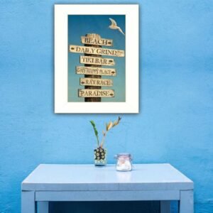 The beach directional 2 white framed print wall art is the perfect decorative accessory for your home. This print is a visual artistic expression that allows you to decorate your space in style. This block print is a way to express your artistic style and add some fashion to your walls. Reproduced for you on paper, this hanging decorative accent will be a trendy and fashionable way to dress your walls. Hang on your wall to add some up to date fashion and decoration. Adding this hanging wall art to your space to make your room feel more finished and attractive. Utilize this opportunity to create a focal point in the room with this fabulous wall decor option. Instantly liven up your space with this art that brings color and dimension to your walls. 18-inch h x 14-inch w x 1-inch dIngredients: Size: Color: Made In: United States