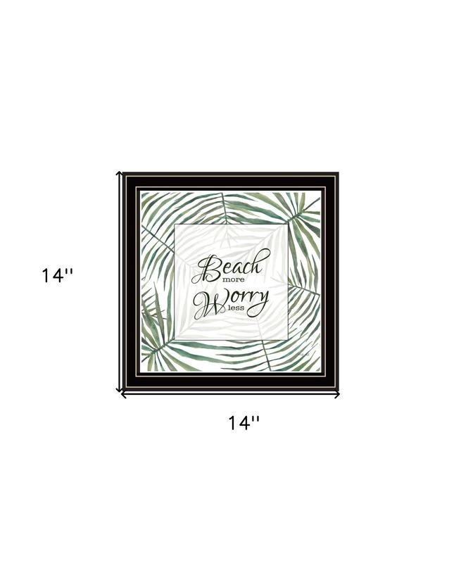 Bring some sizzle to your space with this eye-catching beach more worry less black framed print wall art. This print is a visual artistic expression that allows you to decorate your space in style. Reproduced for you on wood, this hanging decorative accent will be a trendy and fashionable way to dress your walls in a rustic and modern farmhouse vibe. Hang on your wall to add some up to date fashion and decoration. Utilize this opportunity to create a focal point in the room with this fabulous wall decor option. 14-inch H x 14-inch W x 1-inch DIngredients: Size: Color: Made In: United States