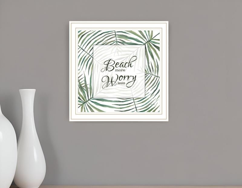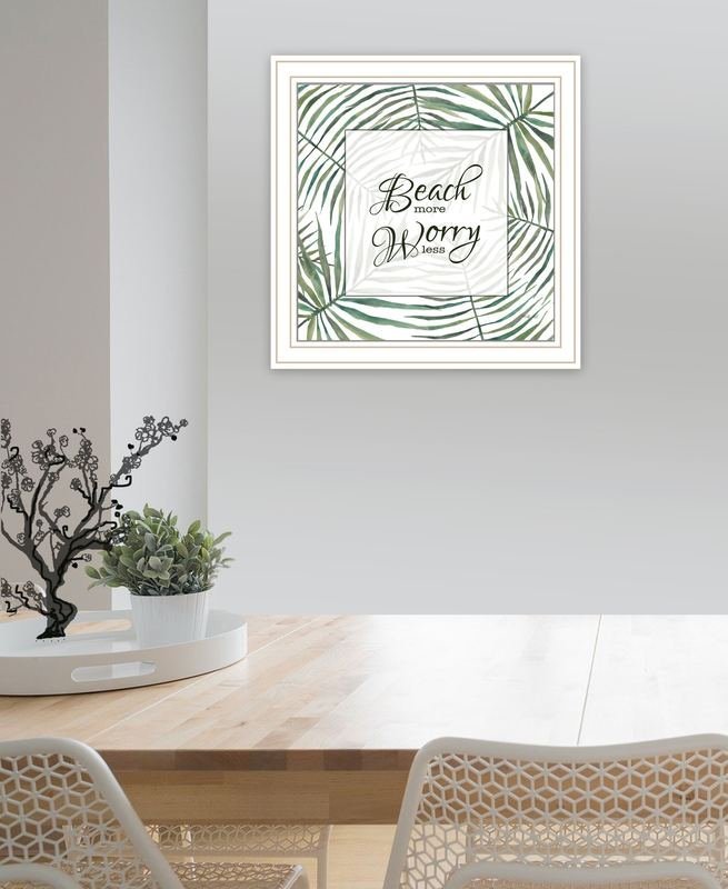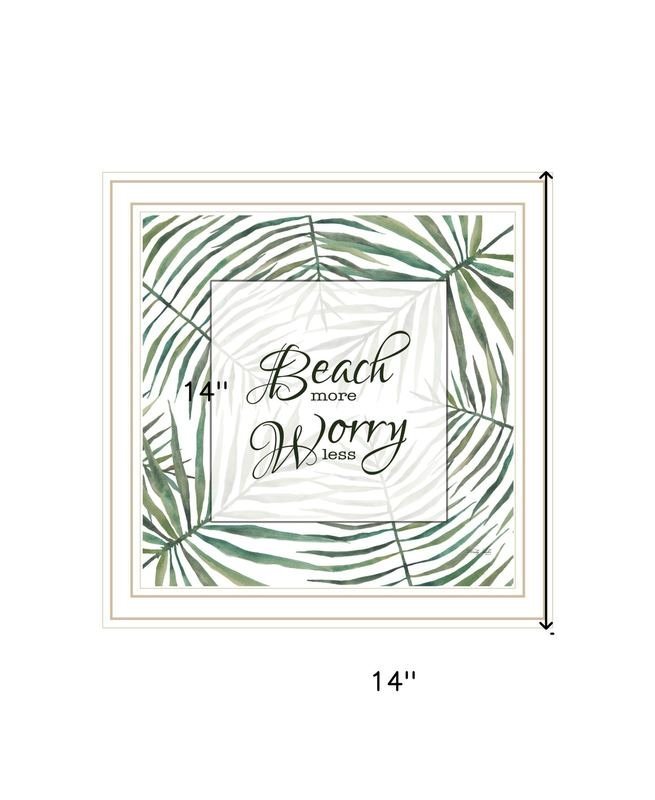 Bring some sizzle to your space with this eye-catching beach more worry less white framed print wall art. This print is a visual artistic expression that allows you to decorate your space in style. Reproduced for you on wood, this hanging decorative accent will be a trendy and fashionable way to dress your walls in a rustic and modern farmhouse vibe. Hang on your wall to add some up to date fashion and decoration. Utilize this opportunity to create a focal point in the room with this fabulous wall decor option. 14-inch H x 14-inch W x 1-inch DIngredients: Size: Color: Made In: United States