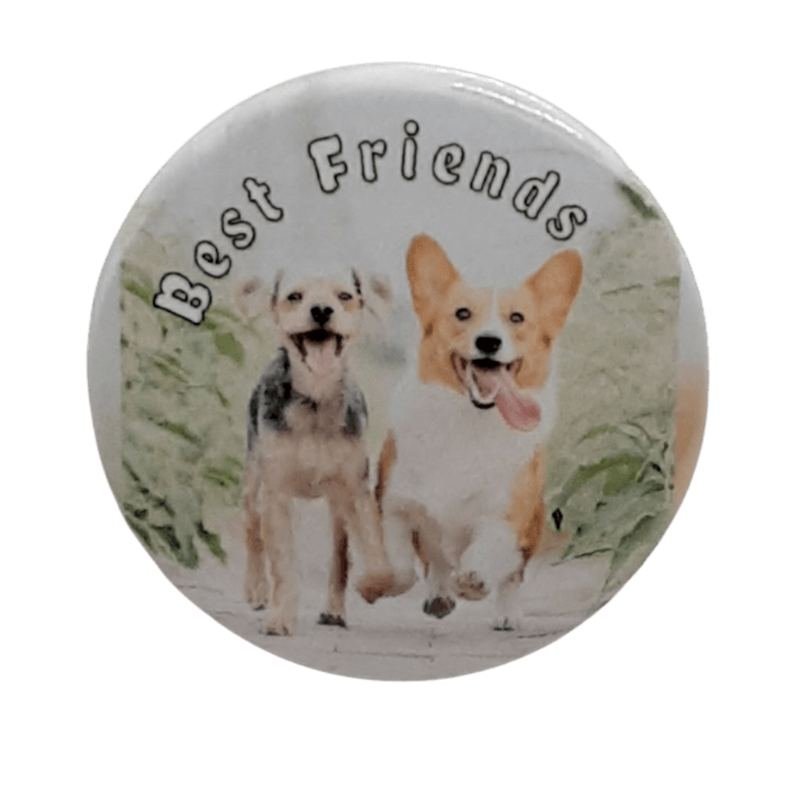 Best Friends: A unique and stylish 2.25-inch pinback button, perfect for adding a touch of personality to your attire or accessories. Features a high-quality design and durable materials for long-lasting use. Ideal for collectors and enthusiasts.Ingredients: Size: 2.25 inchColor: Made In: United States