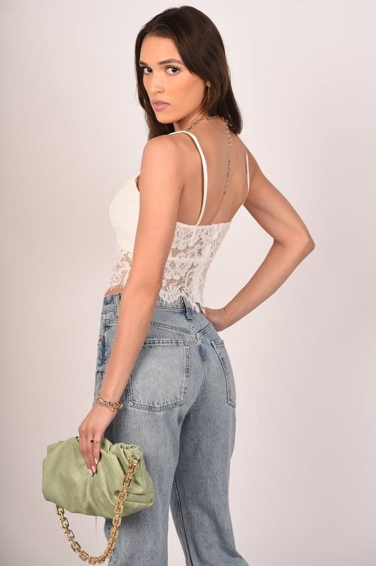 A corset-inspired strapless bustier top in a beautiful textured fabric with lace trims running down vertically. The blouse has a molded bust for a flattering look and comfortable support. The highlight is the flamboyant chiffon puffy sleeves that mimic the wings of a bird. Pair it with black or white straight-cut pants for a sophisticated outfit.